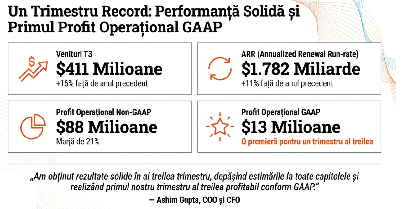 Profitabilitate: Compania a atins o bornă importantă, înregistrând primul său trimestru al treilea profitabil din punct de vedere GAAP, cu un venit operațional de 13 milioane USD, o inversare semnificativă față de pierderea de 43 milioane USD din aceeași perioadă a anului precedent.