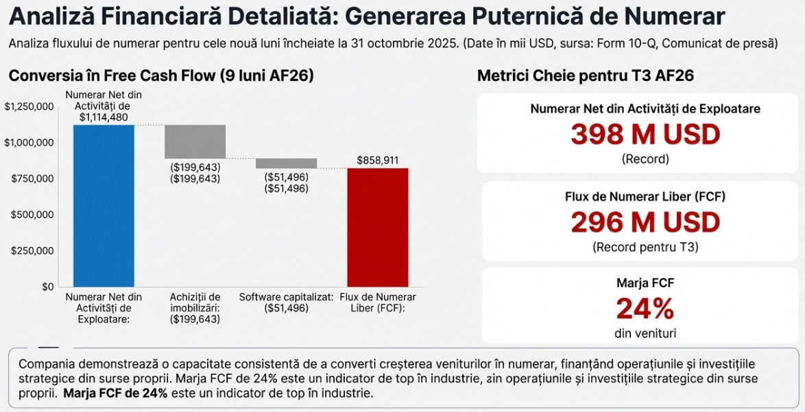 O examinare detaliată a sănătății financiare a UiPath este fundamentală pentru a evalua dacă rezultatele solide din T3 AF2026 reprezintă un impuls sustenabil. Această secțiune analizează critic cifrele din spatele performanței de top, evaluând fluxurile de venituri, profitabilitatea, soliditatea bilanțului și fluxul de numerar pentru a oferi o imagine completă a viabilității financiare a companiei.