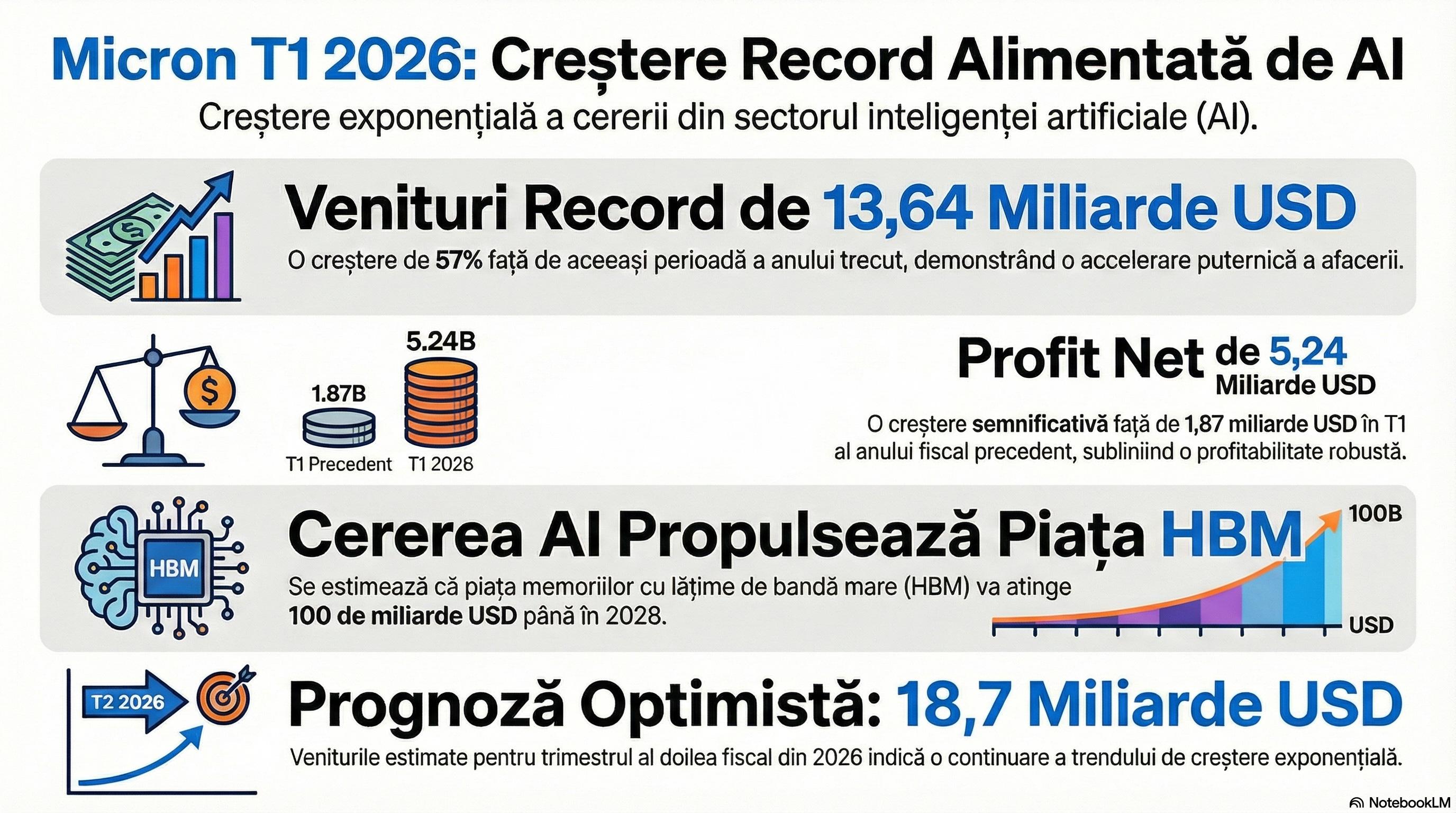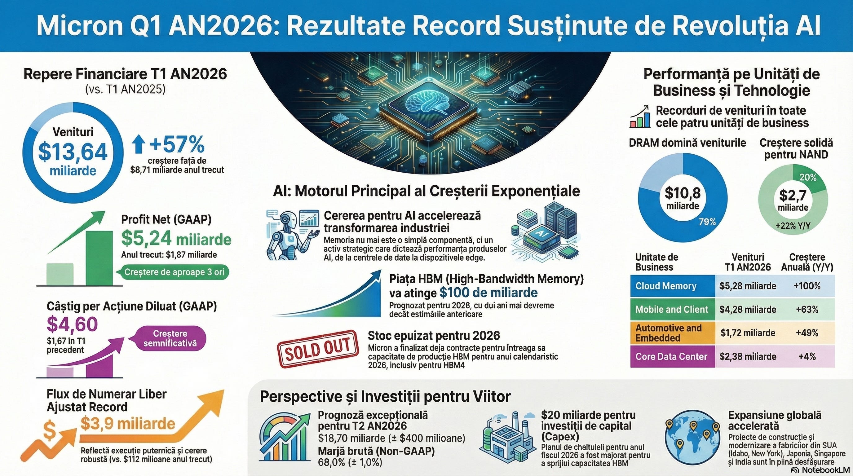 Acțiunile Micron au crescut după ce cererea masivă de memorii pentru AI a alimentat profituri peste așteptări. 📈